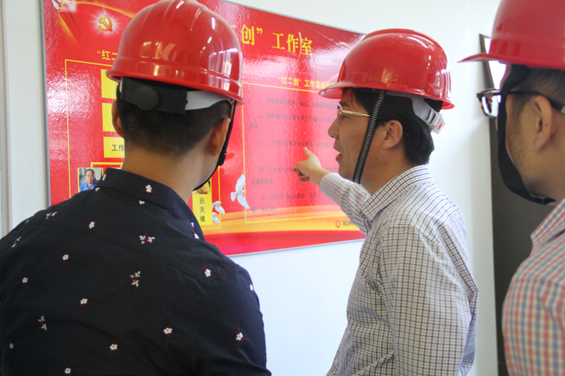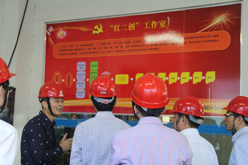 在华体(中国)党建文化展厅中,党委书记孙亮就华体(中国)党建需求库工程为调研队伍作了详细讲解。随后带领他们到生产车间参观了2015年下半年正在开展的党建需求库子项目之一的“红二创”工作室,“红二创”工作室里流程化的党建工作布局和明确的工作分工及相关工作规范化、标准化赢得了参观队伍的一致好评。
