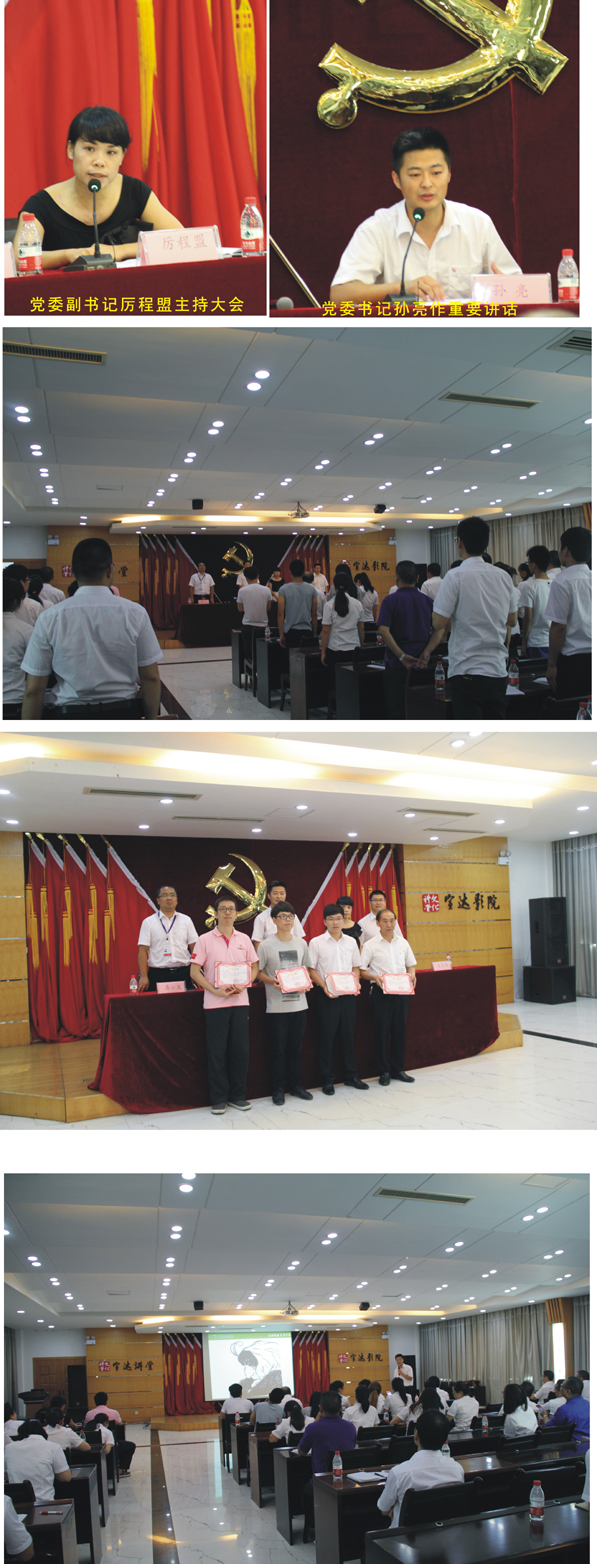 孙亮书记在讲话中指出:今年是中国共产党成立第94周年,同时也是中国人民抗日战争暨世界反法西斯战争胜利70周年。这次大会的目的主要是回顾党的光辉历程,弘扬党的革命传统,激发全公司广大党员、干部和员工爱党、爱国、爱企业的热情和实干苦干的精神,在公司“两大一精”总战略指引下,以“整合优化,聚焦互赢”总体思路为导向,继续解放思想,努力实现公司今年的目标任务。